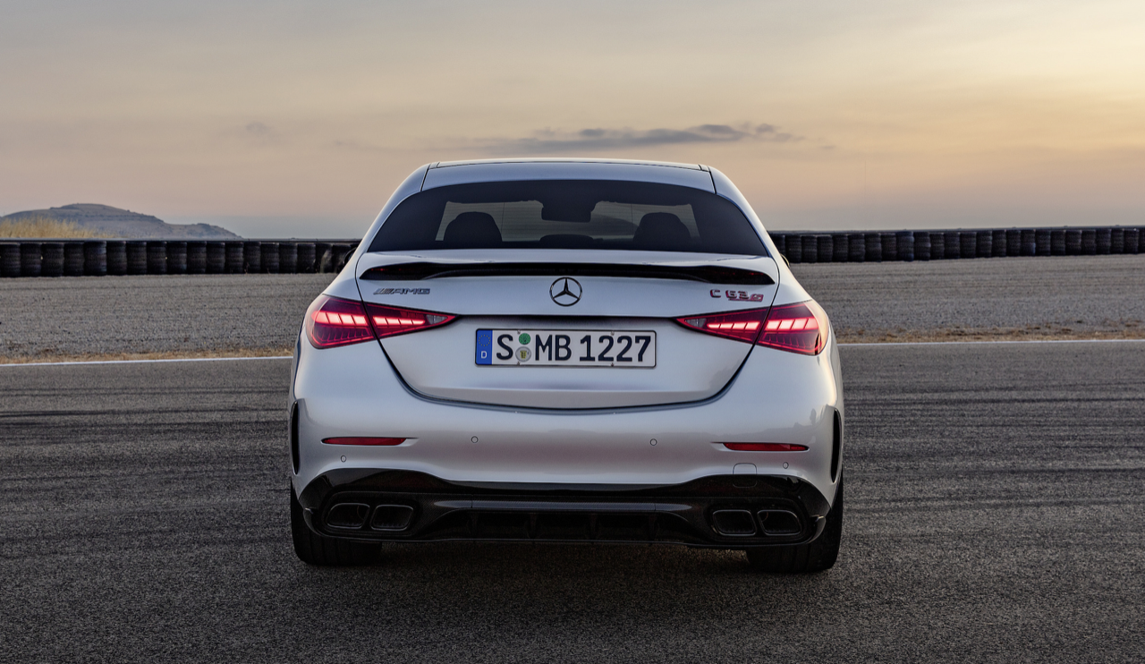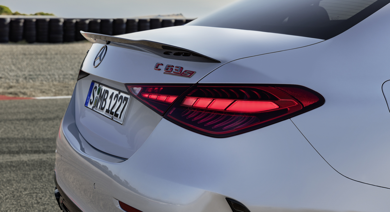 ชุดเหงือกปลาฉลามบนบังโคลนหน้าที่กว้างขึ้น เป็นจุดเด่นบนรูปแบบของแก้มข้าง กาบบันไดข้างที่ลึกกว่า เช่นเดียวกับล้อมาตรฐาน ขนาด 20 นิ้ว ด้านหลังมีดิฟฟิวเซอร์ใต้กันชนหลังแบบดุดัน ปลายท่อไอเสียทรงสี่เหลี่ยมคางหมู ประกอบเข้ากับสปอยเลอร์ฝากระโปรง AMG C-Class มีสไตล์ที่ละเอียดอ่อน โดยมีความสมดุลที่เหมาะสมของความก้าวร้าวทางมุมมอง ตรงกันข้ามกับ BMW M3 การมาถึงของ Mercedes-MAG ในรถซุปเปอร์ซีดานขนาดกะทัดรัดจะทำให้ลูกค้าเก่ารู้สึกประทับใจ
