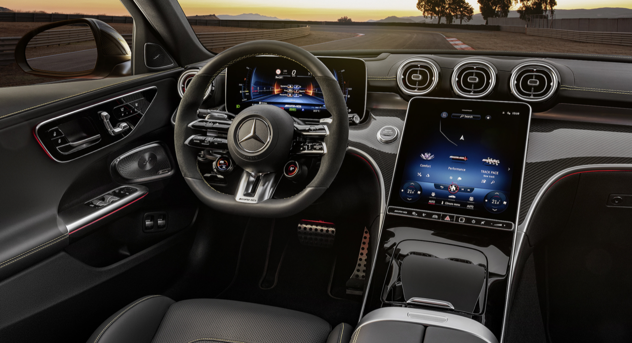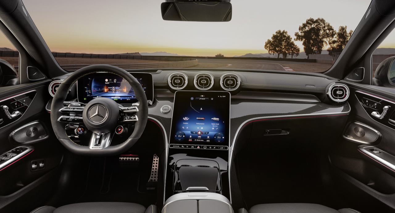 C63 SE Performance รุ่นปี 2024 มีฮาร์ดแวร์ที่ได้รับการอัปเกรดมากมาย เพื่อช่วยควบคุมระบบส่งกำลังที่มีแรงบิดสูง สำหรับสตาร์ตระบบกันสะเทือนมีการปรับลดแรงสั่นสะเทือนและสปริงเหล็กแบบใหม่ทั้งสี่มุม เพื่อช่วยให้ควบคุมองคาพยพมีความสม่ำเสมอ โดยไม่ลดทอนความสบายในการขับขี่มากนัก โหมดการขับเคลื่อนที่หลากหลาย ช่วยให้ผู้ที่อยู่หลังพวงมาลัยปรับแต่งระบบกันสะเทือน การตอบสนองของคันเร่งและเบรก การบังคับเลี้ยว และเสียงของเครื่องยนต์ให้เหมาะกับรสนิยมของตนเอง ได้แก่ Electric, Comfort, Sport, Sport+, Race, Battery Hold และ Slippery