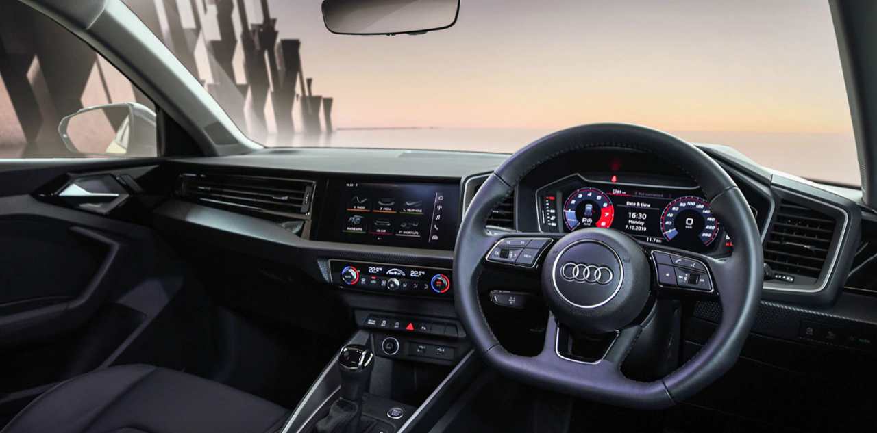 ภายในห้องโดยสาร ย้ำเอกลักษณ์ของ Audi A1 Sportback ที่แตกต่างจาก BMW และ Mercedes-Benz New A1 มาพร้อมกับเทคโนโลยีแบบ fully digital ที่ออกแบบโดยเน้นให้ผู้ขับเป็นจุดศูนย์กลางในการใช้งานอุปกรณ์ภายใน เพื่อความสะดวกและลดขั้นตอนของการใช้งานฟังก์ชั่นต่างๆ จอแสดงข้อมูลการขับขี่แบบ virtual cockpit ขนาดใหญ่ 10.25 นิ้ว ระบบ MMI Radio plus พร้อมจอแสดงผลแบบสัมผัสขนาด 8.8 นิ้ว และที่สำคัญมาพร้อมระบบ Audi smartphone interface รองรับ Android Auto และ Apple CarPlay รองรับการเชื่อมต่อบลูทูธ รองรับ MP3 ช่องเชื่อมต่อ USB 2 ตำแหน่ง ระบบควบคุมอุณหภูมิอัตโนมัติ แยกอิสระ 2 โซน พวงมาลัยมัลติฟังก์ชั่น
