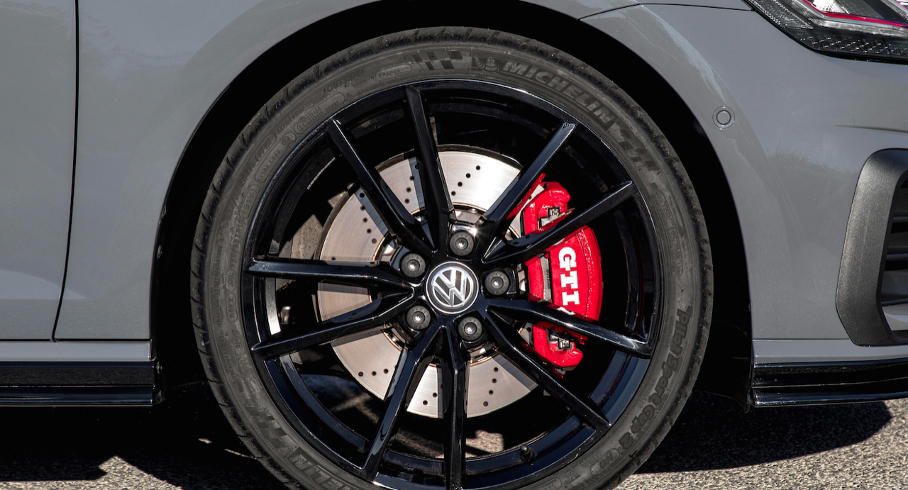 Hothatch อย่าง Volkswagen Golf GTI TCR วางเครื่องยนต์เบนซิน 4 สูบเรียง ความจุ 1,984 ซีซี กำลัง 286 แรงม้า แรงบิด 380 นิวตันเมตร คันนี้ มีระบบขับเคลื่อน 4 ล้อและชุดส่งกำลัง 7 สปีดคลัตช์คู่ ที่เร่ง 0-100 ได้เร็ว 5.6 วินาที และกระทืบเบรกเต็มกำลังที่สปีดความเร็ว 100 กิโลเมตรต่อชั่วโมงจนรถหยุดนิ่งทำเวลาได้ 2.71 วินาที เฉือน A7 55 TFSi ไปแค่ 0.1 วินาทีเท่านั้นเอง Golf GTI TCR ติดตั้งคาร์ลิปเปอร์เบรกหน้าพร้อมผ้าเบรกแบบทนความร้อนพิเศษ จานดิสเบรกเจาะรูระบายความร้อนขนาด 287 มิลลิเมตร ส่วนเบรกหลังแบบซิงเกิ้ลพอต พร้อมจานเส้นผ่าศูนย์กลาง 272 มิลลิเมตร