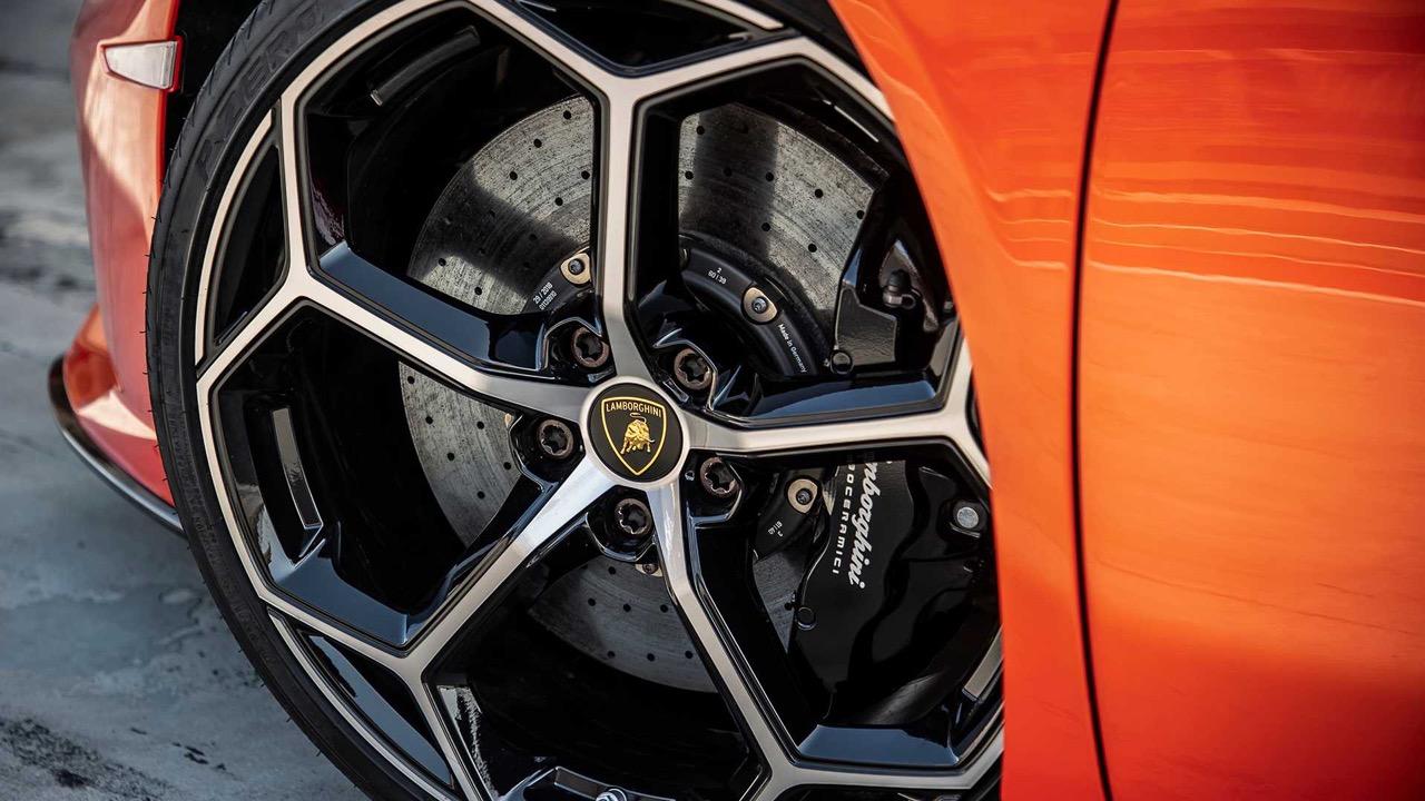 แรงเบรกที่สุดยอดของวัวโหด Lamborghini Huracán Evo LP640-4 มากพอๆ กับกำลังในรูปของแรงม้าและแรงบิด เครื่องยนต์ V10 ของรถรุ่นนี้ ไม่มีระบบอัดอากาศมาคอยช่วยเหลือในด้านการเสริมแรงบิด เครื่อง V10 ตัวใหม่หายใจเอง ถูกปรับปรุงประสิทธิภาพในด้านแรงบิดให้กำลังในรูปของแรงม้าถึง 640 ตัว แรงขึ้นกว่ารุ่นมาตรฐาน 38 แรงม้า แม้เครื่อง V10 จาก Lamborghini จะเป็นรองเครื่อง V8 เทอร์โบของ Ferrari F8 ที่จะออกขายในปีนี้ แถมยังตกเป็นรองเครื่องยนต์ 3.8 ลิตร V8 ทวินเทอร์โบของ McLaren 720S อยู่นิดๆ แต่ Lamborghini ก็จัดเต็มในด้านเทคโนโลยีของระบบขับเคลื่อน 4 ล้อ กับชุดส่งกำลังใหม่ซึ่งเป็นเกียร์ทวินคลัตช์ สปีด ทำให้ Huracan EVO สามารถสำแดงฤทธิ์เดชได้ทันทีทันควันสำหรับการตอบโต้รถซุปเปอร์คาร์คู่แข่ง พละกำลังที่ถูกปรับเพิ่มจาก 602 แรงม้า เป็น 640 แรงม้า แรงบิดพุ่งสูงขึ้นจาก 559.95 นิวตันเมตร เป็น 600 นิวตันเมตร ที่ 4,500-6,500 รอบต่อนาที อัตราเร่งจาก 0-100 กิโลเมตรต่อชั่วโมงทำได้ 2.9 วินาที ส่วนความเร็วสูงสุดถ้าที่ถนนโล่งและยาวพอ Huracan จะมีตีนปลาย หรือท็อปสปีดอยู่ที่ 325.087 กิโลเมตรต่อชั่วโมง ระบบห้ามล้อใช้เบรกแบบพิเศษ เป็นจานเบรกแบบคาร์บอนเซรามิก พร้อมคาร์ลิปเปอร์สีดำแบบ 6 พอตที่ด้านหน้า จานคาร์บอนเซรามิก ขนาด 400 มิลลิเมตร ส่วนเบรกหลังก็ยังคงใช้จานเบรกเซรามิกเหมือนกับด้านหน้า โดยวางคาร์ลิปเปอร์แบบ 4 พอต เส้นผ่าศูนย์กลางจานเซรามิกหลัง 380 มิลลิเมตร ชุดเบรกคาร์บอนเซรามิกเป็นอุปกรณ์มาตรฐานจากโรงงานที่ติดตั้งมาให้ใน Lamborghini Huracan Evolution โดยที่เจ้าของรถไม่ต้องเสียเงินเพิ่ม เมื่อกระทืบเบรกที่ความเร็ว 100 กิโลเมตรต่อชั่วโมง Huracan EVO ใช้เวลาในการหยุดจนนิ่งสนิท ที่ 2.59 วินาทีเท่านั้นเอง.