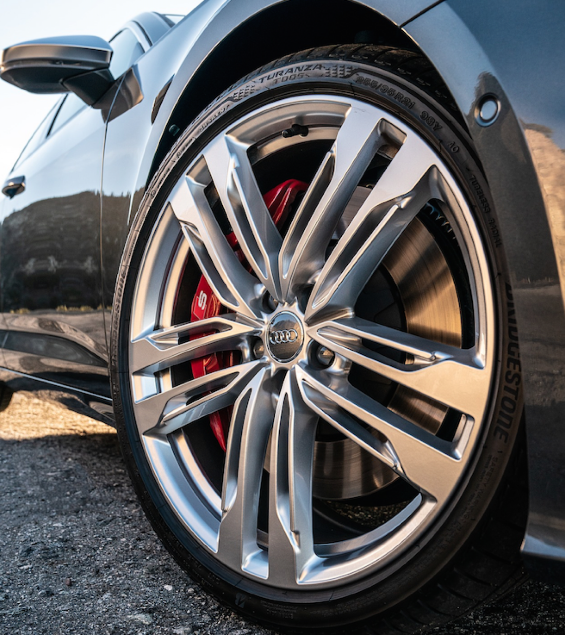 A7 Sportback 55TFSi Quattro เครื่อง V6 ทวินเทอร์โบ 340 แรงม้า 500 นิวตันเมตร พร้อมระบบ Mild Hybrid 48V เป็นรถสปอร์ตซาลูนสมรรถนะสูงของค่าย 4 ห่วง มันทำอัตราเร่งจาก 0-100 ใน 5.7 วินาที และสามารถเบรกที่ความเร็ว 100 กิโลเมตรต่อชั่วโมงจนหยุดนิ่งด้วยเวลา 2.72 วินาที คาร์ลิปเปอร์หน้าแบบ 4 พอตพร้อมจานเบรกขนาดมโหฬารมีพลังในการหยุดยั้งได้ดีมาก รวมถึงการถ่ายเทน้ำหนักขณะเบรกก็ยอดเยี่ยมอีกด้วย