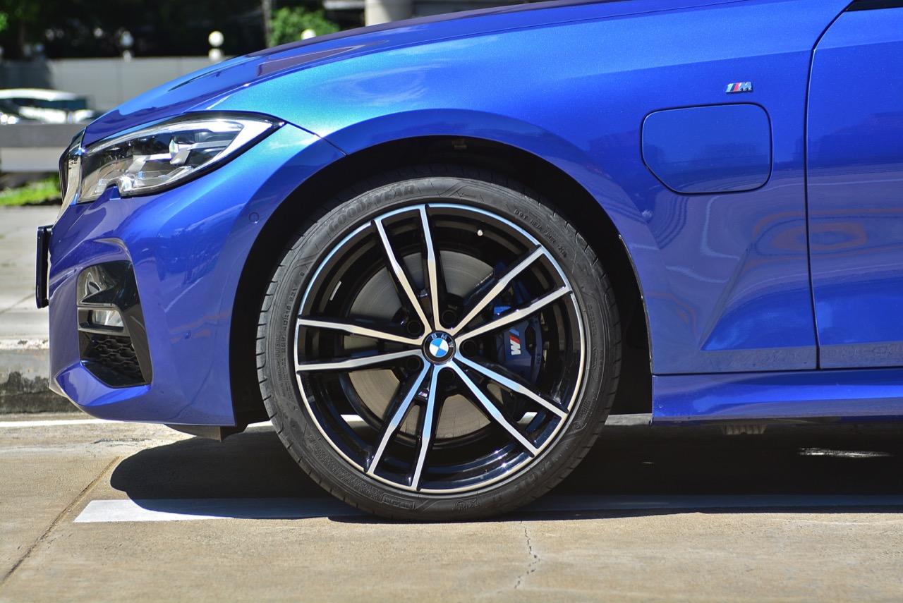 สปอร์ตซีดานพลังงานปลั๊กอินไฮบริด เครื่องยนต์ 2.0 ลิตร เบนซินแถวเรียง 4 สูบเทอร์โบ บวกมอเตอร์ไฟฟ้าและระบบเสียบปลั๊กชาร์จไฟ กำลัง 292 แรงม้า แรงบิด 420 นิวตันเมตร ชุดส่งกำลัง ZF8 สปีด ฝังมอเตอร์ไฟฟ้าไว้ในชุดเกียร์เพื่อคอยเสริมแรงบิด เป็นรถยนต์พลังงานผสมที่เร่งได้เร็วอย่างเหลือเชื่อ อัตราเร่ง 0-100 ของ 330e M-Sport ทำได้เร็วถึง 5.9 วินาที ส่วนระบบเบรก ได้ชุดเบรก BMW M Performance Brakes ผสมผสานการทำงานกับระบบเบรกสะสมพลังงาน regenerative braking ด้านหน้าคาร์ลิปเปอร์เบรกสีน้ำเงินสุดสวยของ M แบบ 4 พอต ส่วนด้านหลังเป็นแบบซิงเกิลพอต เส้นผ่าศูนย์กลางจานเบรกหน้า 330 มิลลิเมตร หลัง 315 มิลลิเมตร เมื่อเร่งความเร็วจนถึง 100 กิโลเมตรต่อชั่วโมง แล้วกระทืบเบรกเต็มแรง 330e ใช้เวลาในการหยุดจนนิ่งสนิทแค่ 2.69 วินาทีเท่านั้นเอง เล่นซะหัวทิ่มหัวตำ แต่เบรกจับแน่นดีมาก รวมถึงการถ่ายเทมวลขณะเบรกก็ยอดเยี่ยม