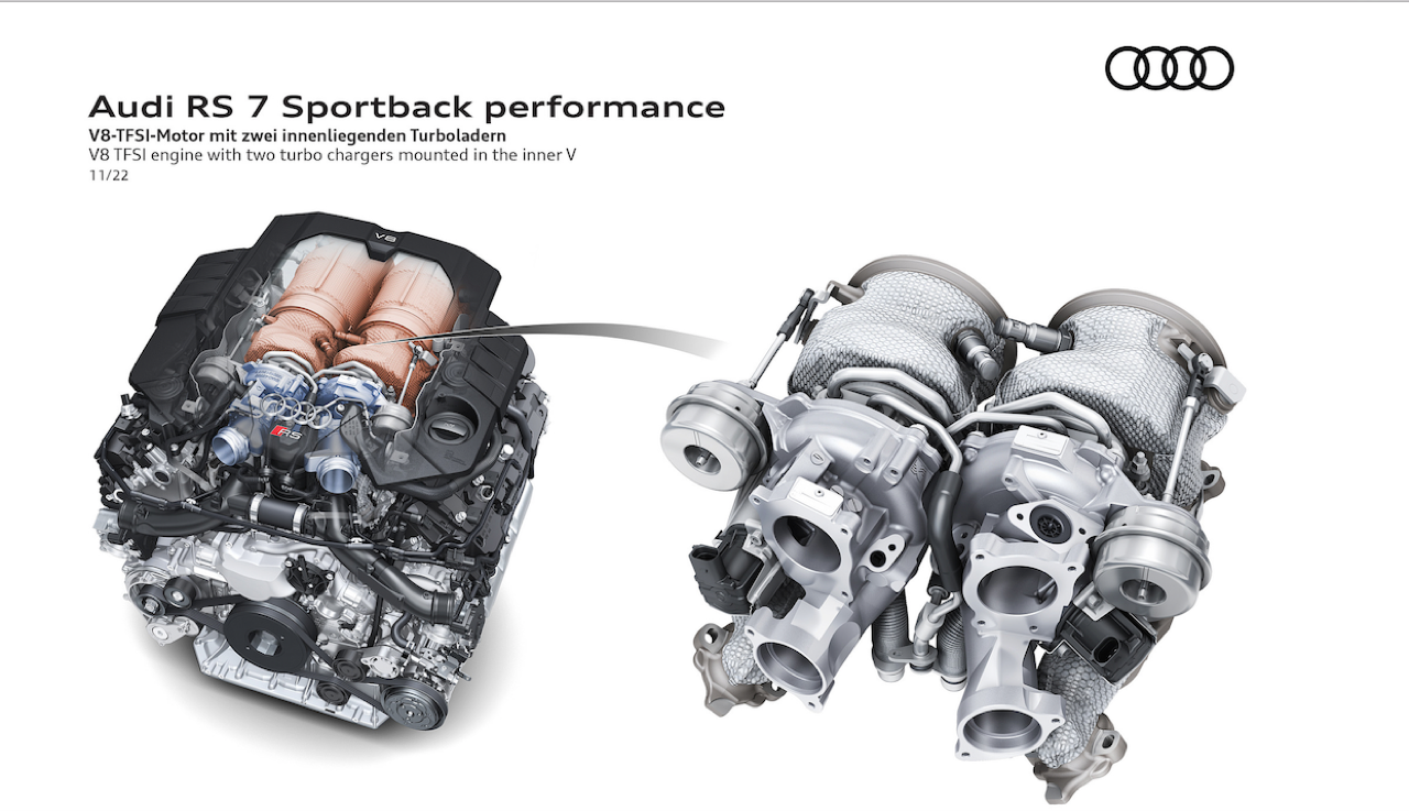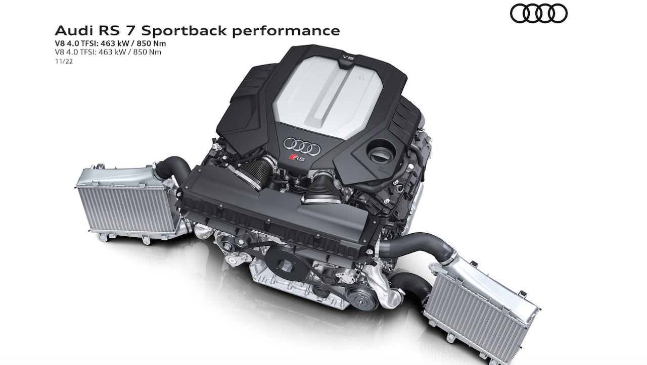 อัปเกรดขุมพลังเบนซิน V8 ทวินเทอร์โบ ระบบขับเคลื่อนสี่ล้อ Quattro ช่วงล่างพิเศษ รองรับความแรงด้วยการยึดเกาะระดับสูง ผลลัพธ์การออกแบบจาก Audi Sport สะท้อนสมรรถนะและรูปลักษณ์ที่ดุดันแข็งแกร่ง ดีไซน์ภายนอกผสมผสานความสปอร์ตในสไตล์ Sportback และความหรูหราเข้าด้วยกัน เพื่อให้รถยนต์สมรรถนะสูงคันนี้สามารถใช้งานได้อย่างสะดวกสบายในทุกโอกาส ทั้งขับใช้งานประจำวัน หรืออัดเต็มกำลังในสนามแข่ง
