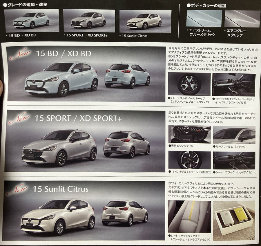 Mazda 2 รุ่นปัจจุบัน เปิดตัวครั้งแรกในโลก ณ งาน Geneva Motor Show 2014 ถือเป็นรถยนต์ Mazda รุ่นหนึ่งที่ขายดีและมีอายุตลาดยืนยาวมาก ใครก็ตามที่เฝ้ารอที่จะได้เห็นการมาถึงของ Mazda 2 รุ่นเปลี่ยนโฉม Full Modelchange อาจจะต้องผิดหวัง เมื่อล่าสุดมีภาพหลุดของ Mazda 2 รุ่นปรับโฉม Minorchange 2023 ที่เตรียมเผยโฉมในประเทศญี่ปุ่น ในวันที่ 27 มกราคม 2023 อีกทั้งยังมีแผนเปิดตัวอย่างเป็นทางการในประเทศไทยช่วงกลางปี 2023 นี้ด้วยเช่นกัน