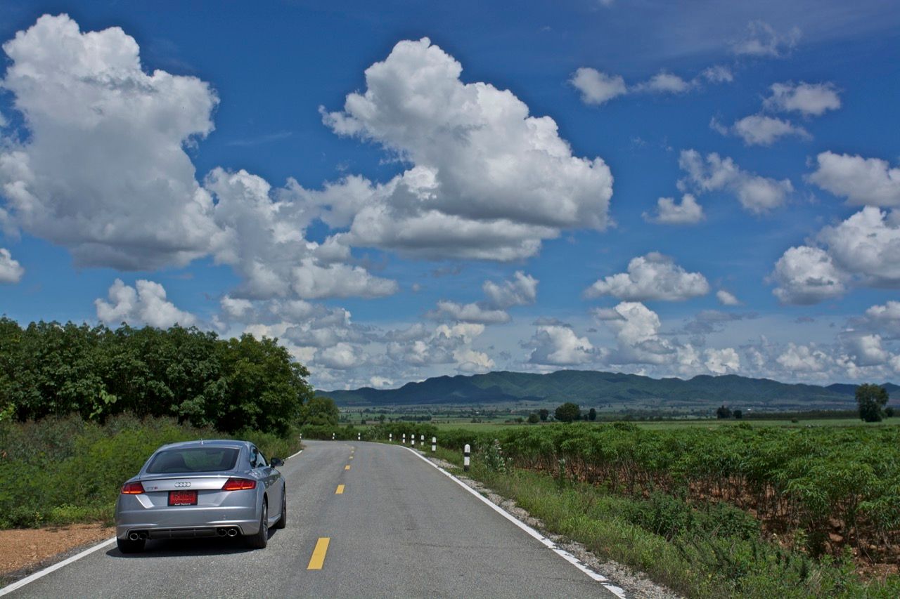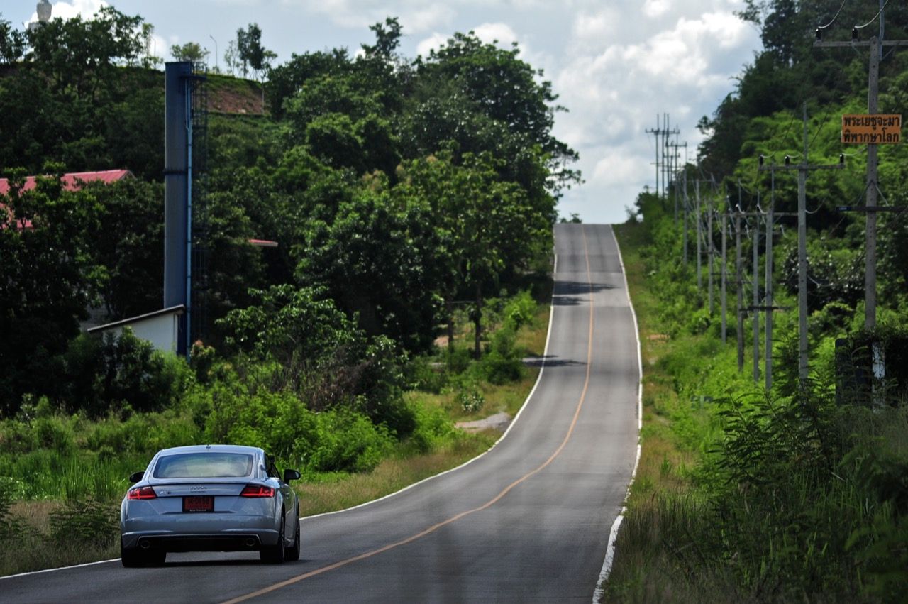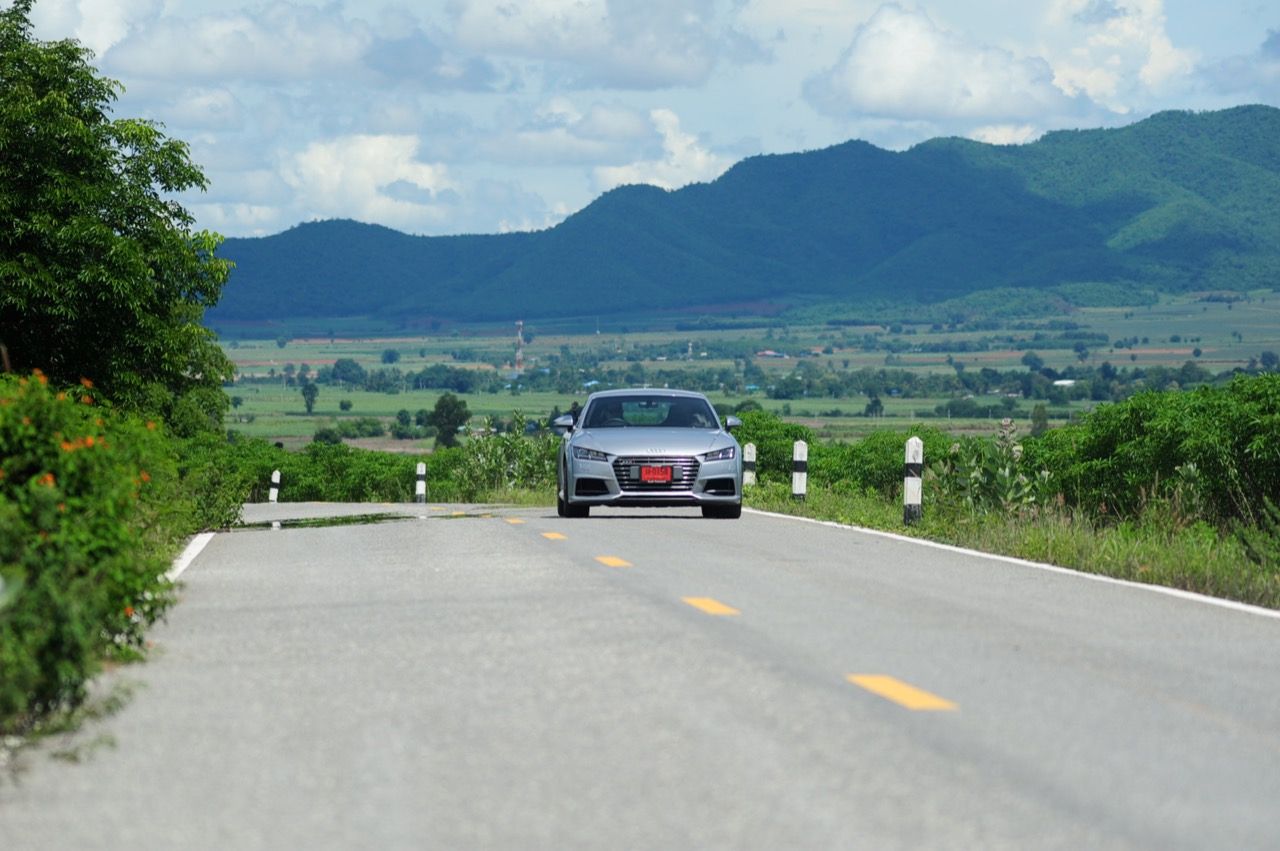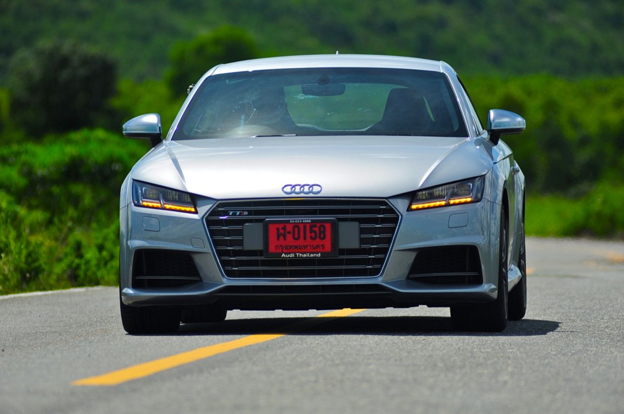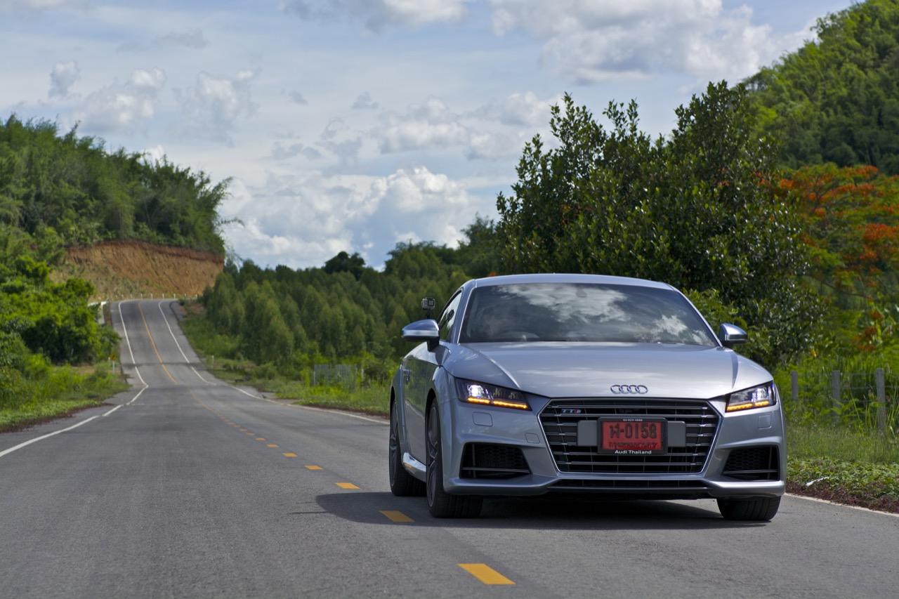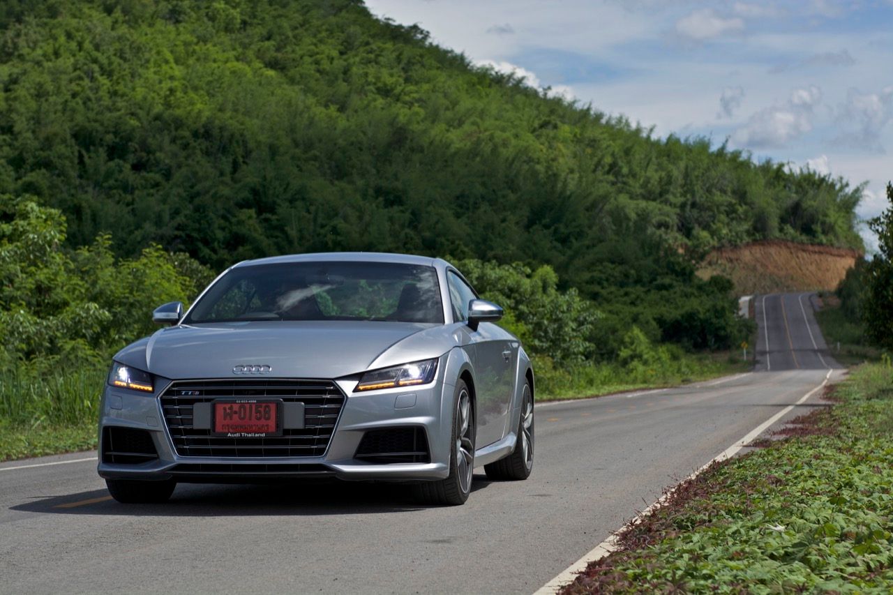 Audi TTS เป็นรถสปอร์ตคันเล็กที่คุณจะเบรก เลี้ยว และเร่งออกจากโค้งได้ดั่งใจ มันมีแรงยึดเกาะที่สูงเอาเรื่อง ทรงตัวในโค้งดีกว่า C43 หรือแม้แต่ M2 คุณสามารถหักเลี้ยวได้อย่างเฉียบคมจากการตอบสนองของหลายระบบที่หล่อหลอมให้ TTS มีประสิทธิภาพตามที่คุณต้องการ ยางติดรถ Hankook Ventus V2 ขนาด 245/35 R19 ตอนรับรถมาพอเห็นยี่ห้อยางเข้าก็เริ่มออกอาการไม่มั่นใจ แต่พอได้ลองแล้วเอามาอัดแรงๆในโค้ง กริ้บของ Ventus V2 นั้นถือว่าใช้ได้เลยทีเดียว แต่ถ้าจะให้มั่นใจมากกว่านี้ขอเป็น Pilot Sport Cup 2 จะสุดกว่านี้มาก! ความท้าทายในวันทดสอบก็คือกลุ่มเมฆฝนที่ไล่หลังมาติดๆ และการขับไปให้ไกลมากที่สุดเพื่อหาโลเคชั่นเงียบๆบันทึกภาพ การขับ Audi สปอร์ตท่ามกลางป่าเขาลำเนาไพรให้ความรู้สึกแปลกประหลาดเนื่องจากเจ้าของ TT ส่วนใหญ่ใช้มันขับไปช็อปปิ้งหรือรับแฟนไปดูหนังทานข้าวตามห้างดังๆ มากกว่าจะมาห้อเต็มสูบอยู่ใจกลางป่าลึกแบบนี้