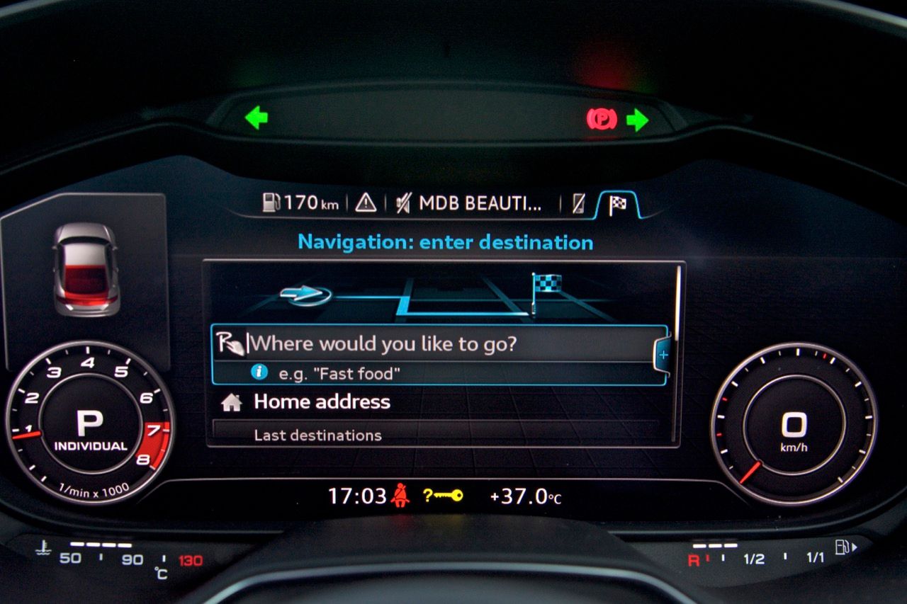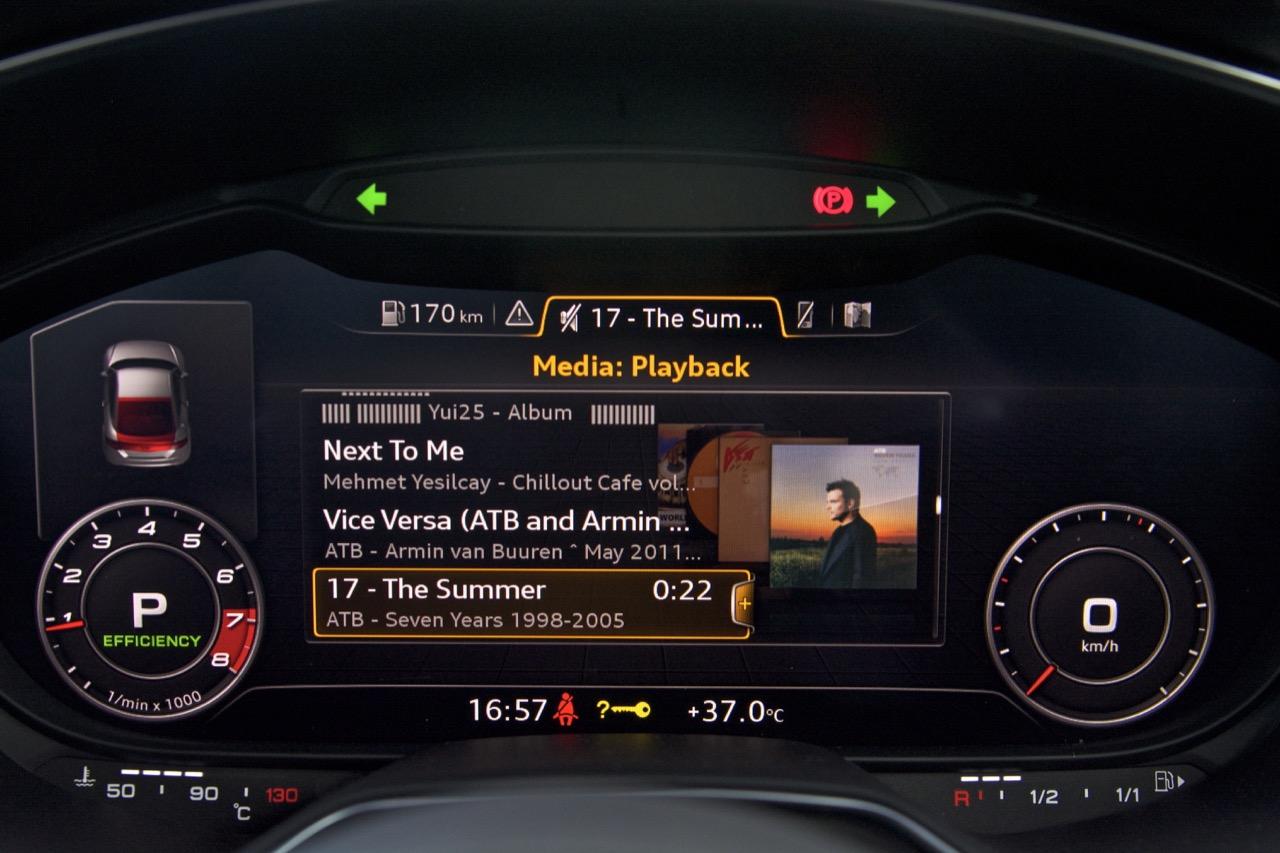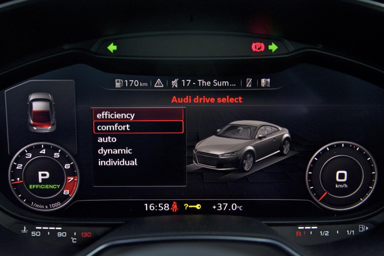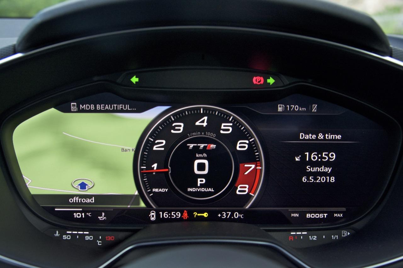 เข็มความเร็วและวัดรอบจะมีขนาดที่ใหญ่ขึ้นแบบการแสดงภาพที่คมชัดมาก จอระบบนำทางเล็กๆ อยู่ตรงกลางหรือหากไม่ชอบก็สามารถเลื่อนเปลี่ยนได้ ผู้ขับขี่สามารถปรับขนาดของมาตรวัดในจอภาพให้เป็นไปตามที่ต้องการ หรือแสดงผลจอภาพทั้งหมดด้วยระบบนำทางและกำหนดพิกัดผ่านดาวเทียม จอภาพทันสมัยขนาด 12.3 นิ้ว ในหน้าปัดมาตรวัดแบบใหม่ของ TT ยังมีลูกเล่นอื่นๆ อีกเพียบ การใช้งานท่ามกลางเทคโนโลยีที่แปรเปลี่ยน ทำให้ค่ายผู้ผลิตรถยนต์ต้องคิดค้นหาวิธีผูกมัดใจคนซื้อให้อยู่หมัดด้วยของเล่นแปลกๆ ที่ทันสมัย มาตรวัดแบบ TFT หรือ thin film transistor ถูกใช้งานอย่างกว้างขวางในรถระดับสูง เช่น Lamborghini / Mercedes Benz / BMW / Ferrari รวมถึง Honda และ Volvo ซึ่งต่างฝ่ายต่างก็พยายามสร้างสรรค์งานศิลปะที่น่าใช้งาน โดยนำมาประดับประดาในรถรุ่นใหม่ด้วยการทำงานราวกับนักมายากล Virtual Cockpit ของ New TT ยังสามารถแสดงค่าต่างๆ ของตัวรถ รวมถึงการโชว์ระบบ Infotainment ด้วยความคมชัดสูงสุด หน้าปัดและแดชบอร์ดต่างๆ ถูกออกแบบมาเพื่อสร้างความรู้สึกถึงการควบคุมจักรกลพลังสูงอย่างแท้จริง