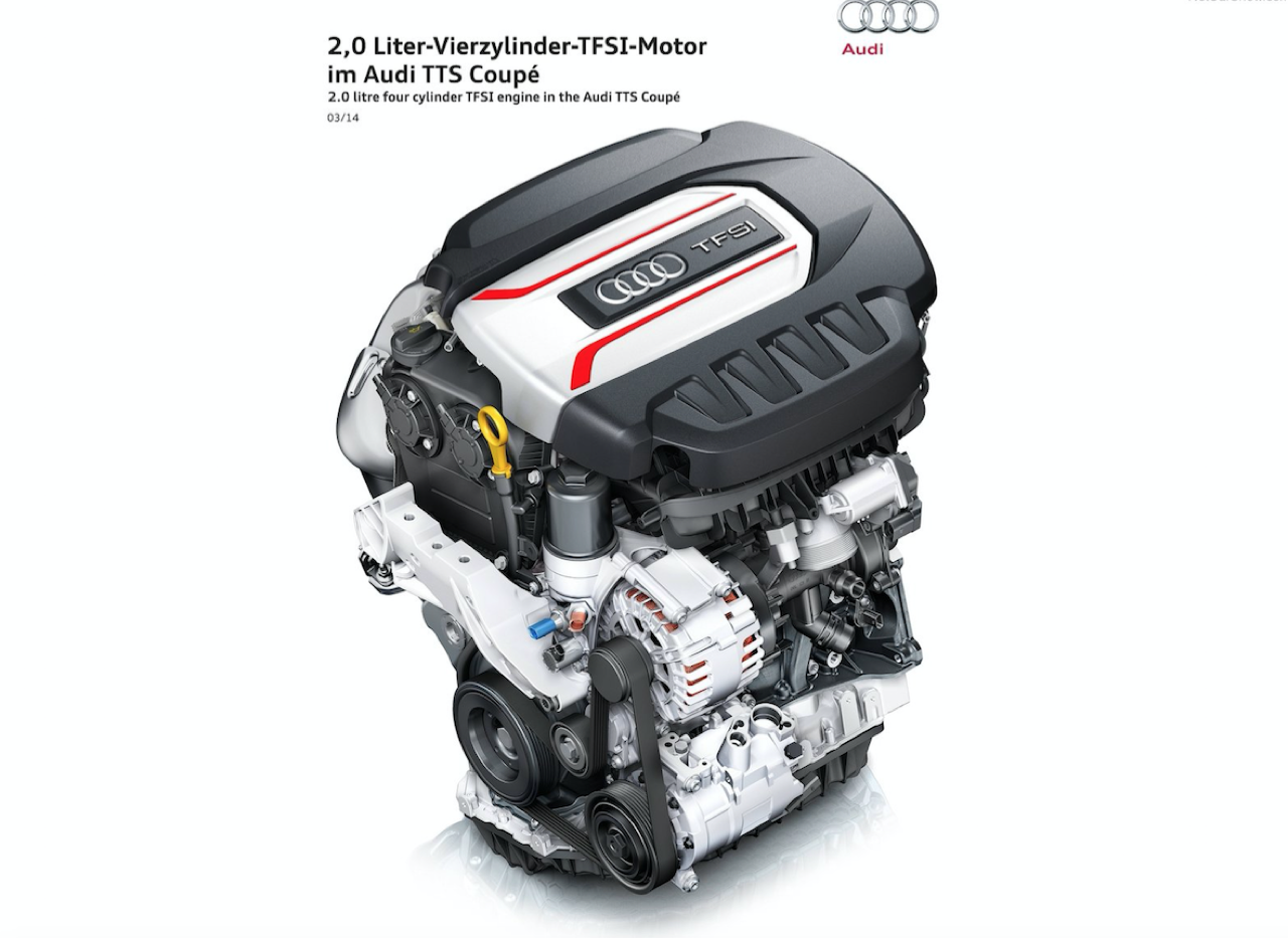 Audi TTS Quattro มาพร้อมกับเครื่องยนต์เบนซินแถวเรียง ขนาด 2.0 ลิตร TFSI กำลัง 286 แรงม้าที่ 5,300-6,200 รอบต่อนาที เป็นเครื่องยนต์อัดอากาศด้วยเทอร์โบชาร์จที่มีรอบจัดจ้านเอาเรื่อง ระบบจ่ายน้ำมันเชื้อเพลิงยิงตรงไดเรค อินเจคชั่น พร้อมระบบวาล์วแปรผัน AVS (AUDI Valve lift System) ปรับองศาของวาล์วไอเสีย เครื่องยนต์อัดอากาศด้วยเทอร์โบ ให้แรงบิดสูงสุด 380 นิวตันเมตร ที่ 1,600-4,300 รอบต่อนาที ระบบขับเคลื่อน ส่งกำลังผ่านเกียร์อัตโนมัติ S-Tronic 6 สปีด พร้อมกลไกคลัตช์คู่ ระบบเกียร์แบบคลัตช์คู่หรือใช้คลัตช์ 2 ชุดช่วยให้การเปลี่ยนเกียร์ออโต้ 6 สปีดมีความว่องไวและไหลลื่น สามารถปรับโหมดการควบคุมจากระบบออโต้ไปเป็นแบบเกียร์ธรรมดาได้ด้วยการผลักคันเกียร์ไปทางซ้ายแล้วชิฟเกียร์ด้วยตำแหน่ง +/- หรือชิฟผ่านแป้น Paddle Shift ที่หลังวงพวงมาลัย สมรรถนะของเครื่องยนต์ 2 ลิตรเทอร์โบกับเกียร์ 6 สปีดและระบบขับเคลื่อนทุกล้อทำให้ Audi TTS Quattro มีอัตราเร่งจาก 0-100 กิโลเมตรต่อชั่วโมงใน 4.7 วินาที โดยมีความเร็วสูงสุด 250 กิโลเมตรต่อชั่วโมง