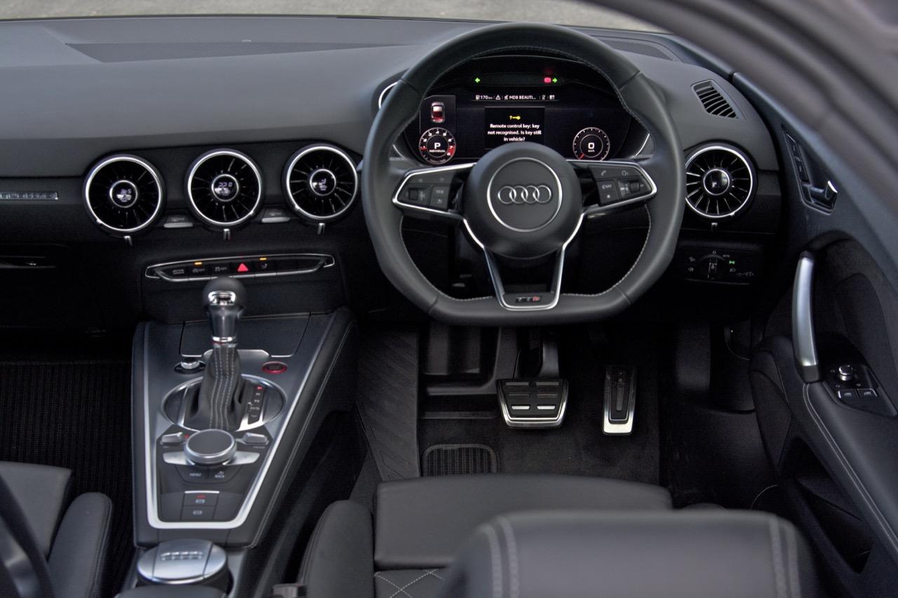 เบาะนั่งสไตล์สปอร์ตของ Audi TTS ใช้พนักพิงศีรษะแบบรวม (integrated head restraints) และอยู่ในตำแหน่งค่อนต่ำลงกว่ารถรุ่นก่อน น้ำหนักของเบาะเบาลงมากกว่าของรถ TTS รุ่นก่อนถึง 5 กิโลกรัม พวงมาลัยพร้อมสวิตช์ควบคุมแบบใหม่ที่มาพร้อมระบบปุ่มควบคุมการทำงานต่างๆ เดินเส้นขอบตัดและหุ้มหนังแบบสปอร์ต 3 ก้าน มีการใช้งานโลหะพวกอะลูมิเนียมมาประดับประดาเพื่อยกระดับของความหรูหราน่าใช้งาน แม้ว่ารถ Audi TTS จะมีเบาะนั่งแบบ 2+2 ที่นั่งซึ่งเหมาะสำหรับการใช้ในชีวิตประจำวัน และมีช่องเก็บสัมภาระด้านหลังที่กว้างถึง 305 ลิตร มากกว่ารุ่นก่อนถึง 13 ลิตร แต่เบาะหลังมีพื้นที่คับแคบไม่เหมาะกับการนั่งเดินทางไกล จากความแคบของพื้นที่วางเท้าหากคนขับและคนนั่งหน้ามีรูปร่างสูงใหญ่ ซึ่งต้องเลื่อนเบาะหน้าถอยหลังมาอีกไกลรับรองว่าเบาะหลังแทบจะนั่งกันไม่ได้เลยทีเดียว สำหรับพื้นที่เก็บสัมภาระสามารถเพิ่มพื้นที่ได้หากพับเบาะนั่งด้านหลังราบลงกับพื้น เบาะผู้โดยสารตอนหลังที่เล็กและคับแคบ เหมาะกับเด็กเล็กมากกว่าผู้ใหญ่ หรือเอาไว้วางของจะดีกว่านั่งโดยสารกันไกลๆ