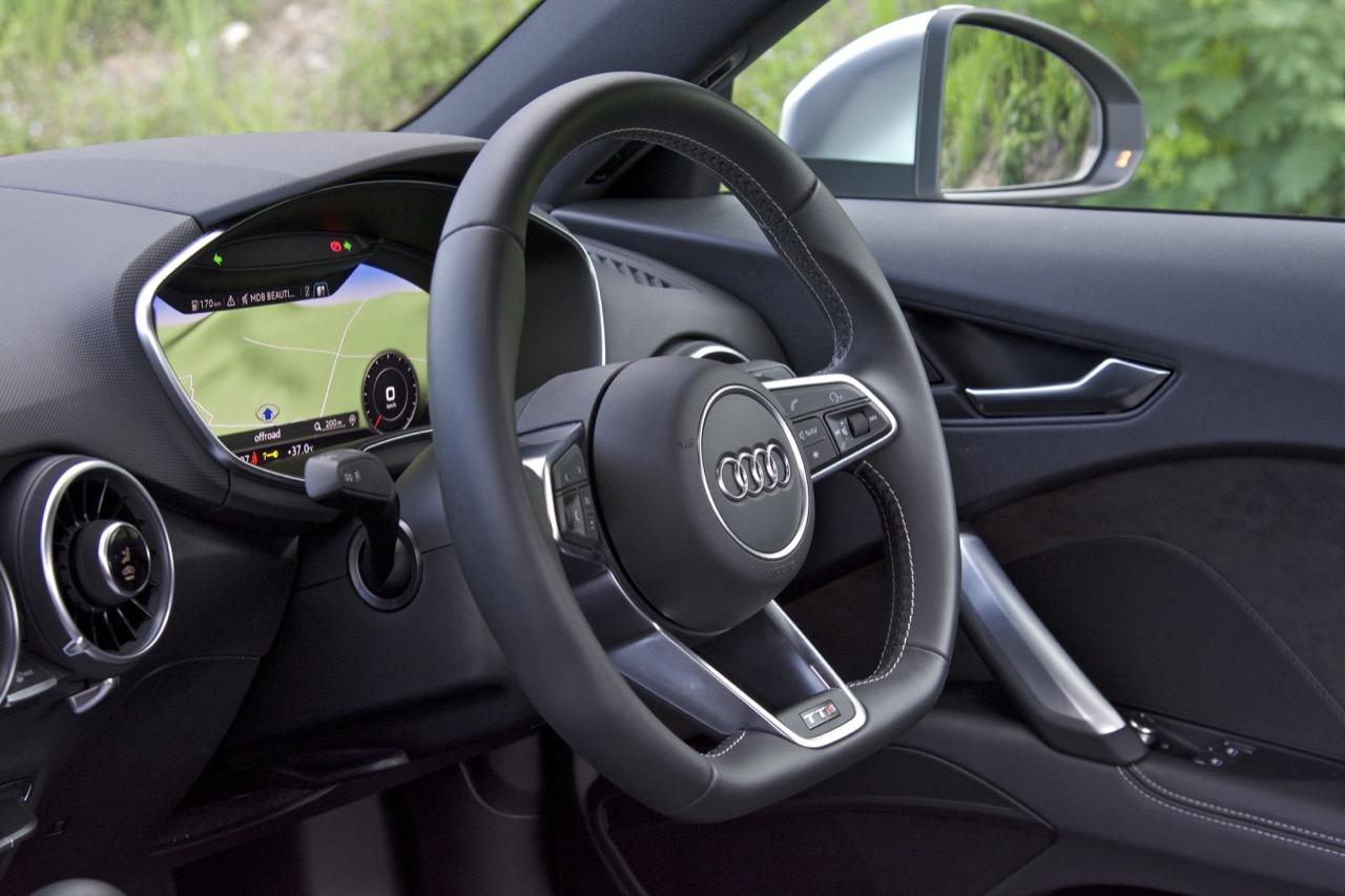 ฟังก์ชั่นอื่นๆ ใน Virtual Cockpit ของ New TTS ประกอบด้วยการกดคำสั่งสั่งงานผ่านปุ่มควบคุมบนพวงมาลัย ยุคสมัยที่เปลี่ยนไปทำให้ปุ่มควบคุมถูกย้ายมาอยู่ในตำแหน่งที่ช่วยทำให้การควบคุมขับขี่รถในปัจจุบันมีความปลอดภัย นอกจากปุ่มควบคุมบนพวงมาลัยแล้ว New TTS ยังใช้แป้นระบบสัมผัสที่กลายเป็นของจำเป็นในรถอย่าง iDRIVE ใน BMW M2 และ comand control ใน Mercedes C43 AMG แป้นควบคุม MMI ใน Audi TTS วางอยู่ในตำแหน่งที่ใกล้กับคันเกียร์เพื่อความสะดวกสบายของคนขับ สวิตช์ควบคุมแบบหมุนคล้าย iDRIVE ของ BMW ทั้งการเข้าสู่เมนูต่างๆ ด้วยความรวดเร็ว หรือใช้ในการหมุนตามเข็มนาฬิกาเพื่อขยายจอภาพที่กำลังแสดงผลของระบบนำทาง วิศวกรของ Audi ออกแบบสวิตช์ควบคุมให้หมุนใช้งานได้ง่าย ลดฟังก์ชั่นที่ไม่จำเป็นให้น้อยลง ผู้ขับสามารถกดเลือกหรือสั่งคำสั่งด้วยความรวดเร็วมากกว่าสวิตช์ควบคุมของ TTS รุ่นที่แล้ว ดีไซน์ของ Virtual Cockpit ใน TTS เจเนอเรชั่นที่ 3 เป็นงานออกแบบที่ชาญฉลาด ช่วยลดปัญหาในเรื่องความสับสนของปุ่มและสวิตช์ต่างๆ การนำเอาคุณลักษณะของ Cockpit อากาศยานมาปรับใช้บริเวณกึ่งกลางแดชบอร์ดที่ทำให้มองคล้ายกับปีกของเครื่องบิน พวงมาลัยมีการออกแบบที่สอดคล้องไปกับหน้าปัดมาตรวัด ช่วยทำให้ทัศนวิสัยโปร่งโล่ง วิศวกรของ Audi พัฒนาถุงลมนิรภัยให้มีขนาดเล็กลงกว่าเดิม 40% ทำให้แป้นทรงกลมตรงกลางวงพวงมาลัยที่ใช้บรรจุถุงแอร์แบ็กมีขนาดเล็กและสมส่วนมากยิ่งขึ้น