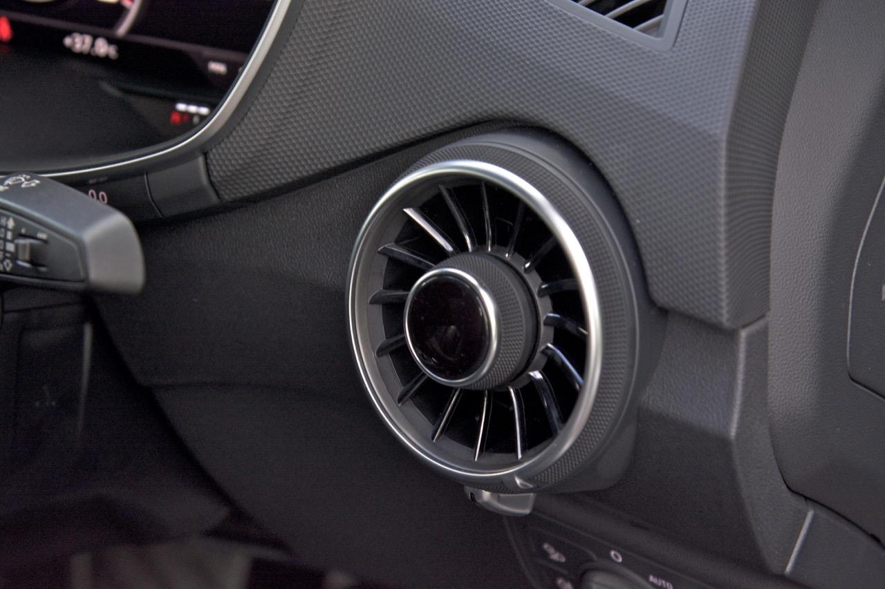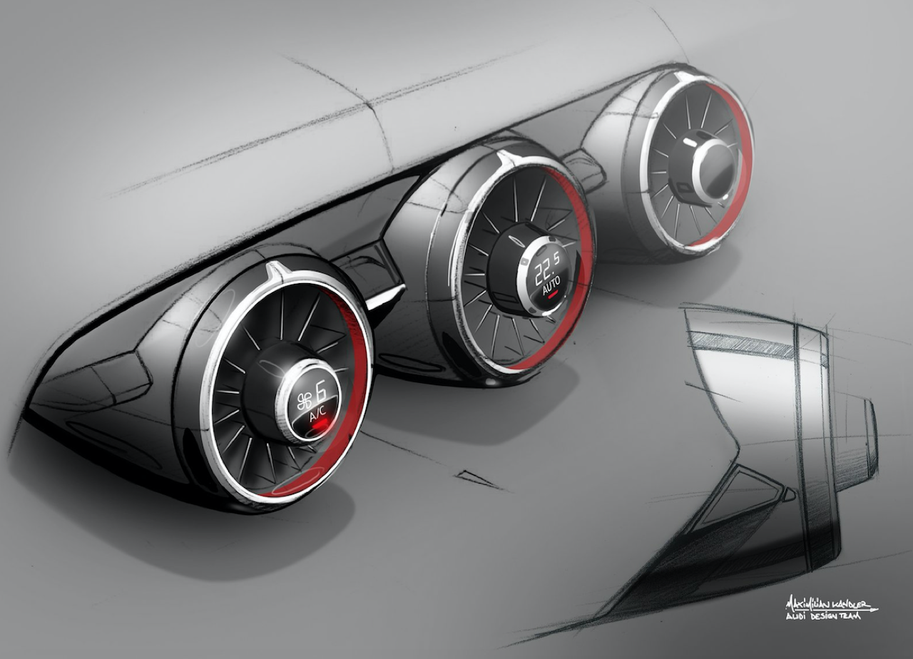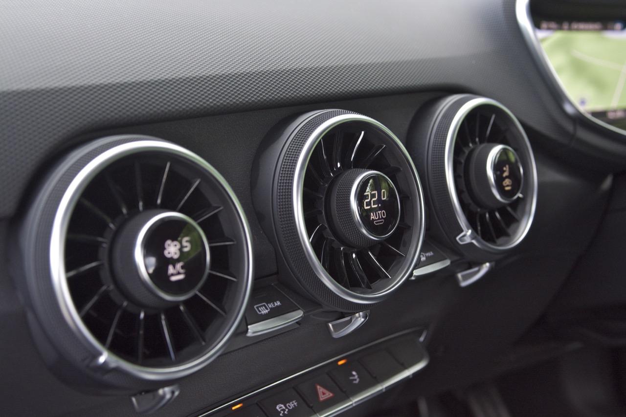 แดชบอร์ดขึ้นรูปด้วยโฟมสังเคราะห์เพื่อซับเสียงแปลกปลอมจากภายนอก ซึ่งรวมไปถึงการลดแรงสั่นสะเทือนจากการทำงานของเครื่องยนต์ งานประกอบภายในที่ดี ถึงแม้ช่วงล่างจะแข็งแต่ไม่มีเสียงเสียดสีกันของชิ้นส่วนพวกของตกแต่งดังออกมาให้เสียอารมณ์เมื่อวิ่งผ่านผิวถนนที่ไม่เรียบ ปุ่มปรับอุณหภูมิภายในห้องโดยสารออกแบบได้ล้ำอนาคตเอามากๆ เป็นการผสมผสานอย่างชาญฉลาดของช่องแอร์ ติดตั้งอยู่ด้านบนของแดชบอร์ด คล้ายเครื่องยนต์เจ็ตของอากาศยาน ช่องแอร์ทรงกลมมีปุ่มปรับความเร็วของพัดลมแอร์อยู่ที่ช่องด้านซ้ายสุด ช่องแอร์ตรงกลางคอนโซลเป็นปุ่มปรับอุณหภูมิภายในของห้องโดยสาร ส่วนช่องแอร์ขวามือสุดเป็นที่อยู่ของปุ่มปรับทิศทางของระบบแอร์ ใต้ช่องแอร์ทรงแนวเป็นที่อยู่ของปุ่มปรับโหมด Audi drive select สวิตช์ตัดการทำงานของระบบ Audi Auto start/stop ปุ่มปิดระบบแทรคชั่นคอนโทรล ปุ่มไฟฉุกเฉิน และปุ่มยกหรือพับเก็บสปอยเลอร์หลังแบบไฟฟ้า
